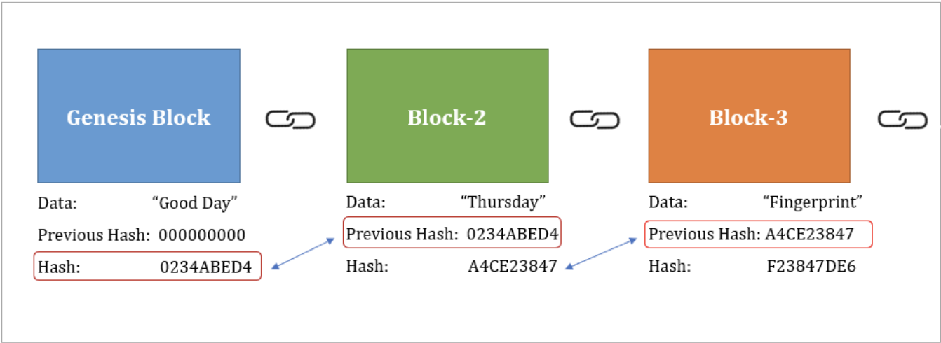 다시 위로 올라가서 돌아보자. 블록체인은 모두 블록으로 연결되어있고, 데이터의 "무결성"을 보장한다고 한다. 따라서 Trustless의 초신뢰를 보장해주는 시스템으로 설명했다. 그런데 여기서 의문점이 생겼다. previsous_hash는 무엇?, 그리고 이게 어떻게 무결성을 보장해? 부분이다. 트랜잭션을 생성하고 -> 검증이 끝나 -> 정상적으로 네트워크에 블록이 생성된다면 각 블록은 고유의 Hash값으로 암호화된 데이터를 가진다. (뭐.. id값이라고 생각하면 편하다). 이 Hash는 뒤에서도 실습해보겠지만, 값이 하나만 변하더라도 아예 암호문자체가 통째로 변경되기에 띄어쓰기 하나 점 하나도 맘대로 찍으면 변질되어버린다. 다시 각설하고, 본론으로 돌아가 아래 그림처럼 각 블록은 고유의 해시값을 가지며 -> 이것이 previous_block이라는 이름으로 다음 블록에 포함되게 된다. 따라서 이전 블록 혹은 이후 블록의 내용을 중간에 수정해버리면 그 이후의 모든 블록의 previous_hash값이 일치하지 않기에 위변조가 불가능해지는 것이다.
