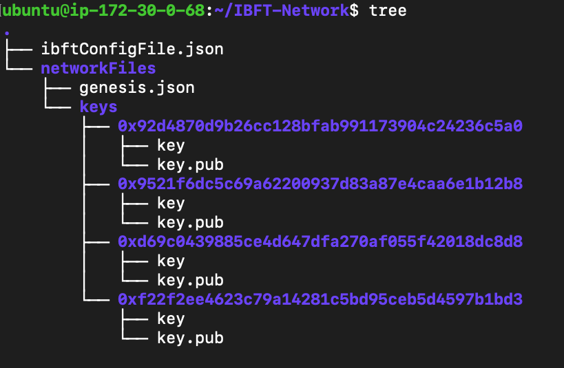 b. 키체인을 생성하고 Genesis파일을 만듭니다. (위 작성한, ibftConfigFile.json 를 통해 생성됨)