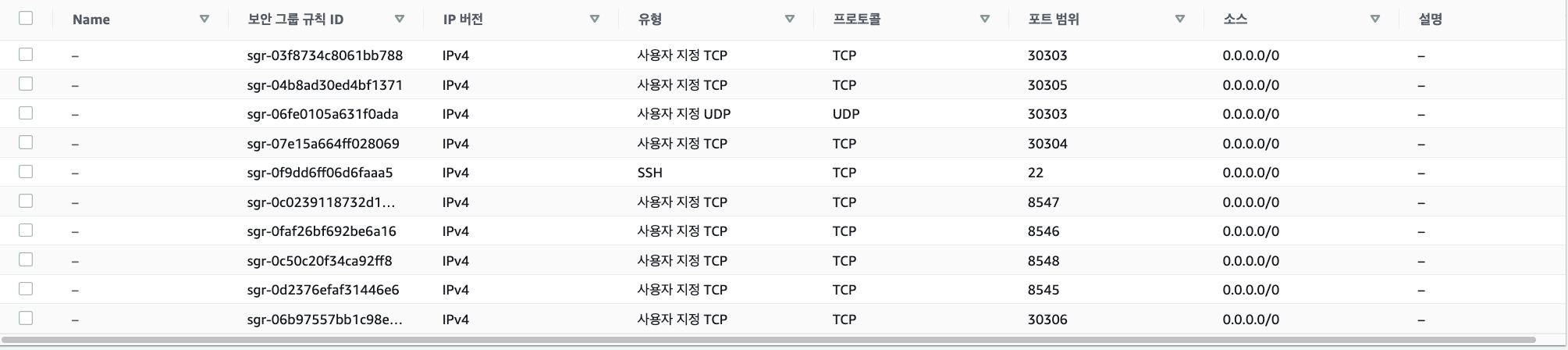 a. 인바운드 규칙에 Node-2, 3, 4의 TCP & UDP 포트를 오픈해야한다. (각 구동 명령어에 --p2p-port= 와, --rpc-http-port= 의 내용으로 존재한다)